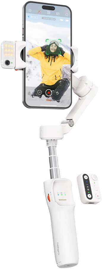 Upptäck Hohem iSteady V3, den smarta gimbalstabilisatorn som tar dina videor till nästa nivå. Med avancerad AI-ansiktsspårning håller den dig i fokus i varje bildruta, oavsett vilken app du använder. Den trådlösa, avtagbara fjärrkontrollen ger dig frihet att ta selfies och filma på distans, medan den inbyggda förlängningsstaven och stativet låter dig fånga kreativa vinklar med perfekt stabilitet. Dess hopfällbara och lätta design gör den enkel att ta med överallt, och den uppgraderade belysningen ger perfekt ljus i alla miljöer. Med Hohem iSteady V3 är varje ögonblick bara en gest bort.