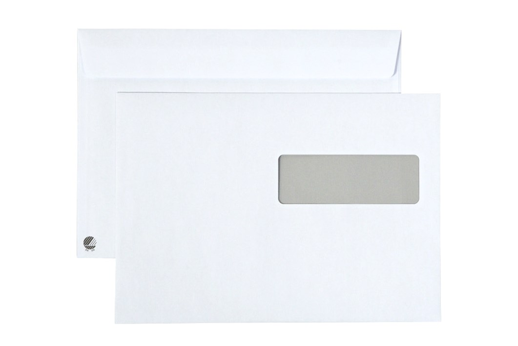 Vitt standardkuvert med grått innertryck och remsa. C5 med fönster till höger. 162x229mm. Kommer i kartonger med praktiskt lock om 500ex. Miljömärkt med Svanen.