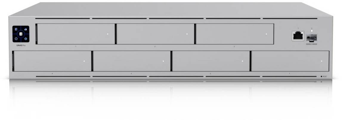Ubiquiti Networks UniFi NAS Pro, 7-bay NAS, ARM Quad Core 1,7GHz CPU, 8 GB RAM, 1GbE RJ45+10GbE SFP+, rackmonterbar 2U