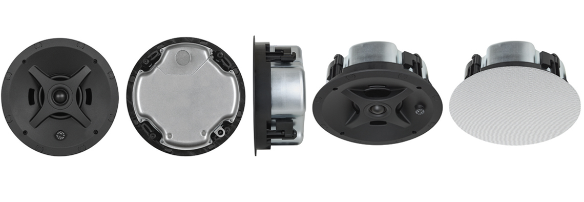 The Sonance PS-C43RTLP Low Profile In-Ceiling Speaker is designed for tight spaces, fitting beneath HVAC ducts or in 2'x4' stud bays. Its shallow 3.43" design features a magnetically secured bezel-less grille for easy painting. With a 4" woofer and pivoting 1" tweeter, it delivers exceptional audio performance.