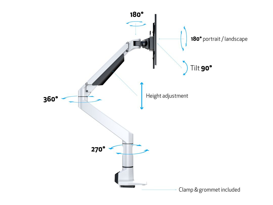 • Triple-jointed gas lift arm for smooth and effortless movement