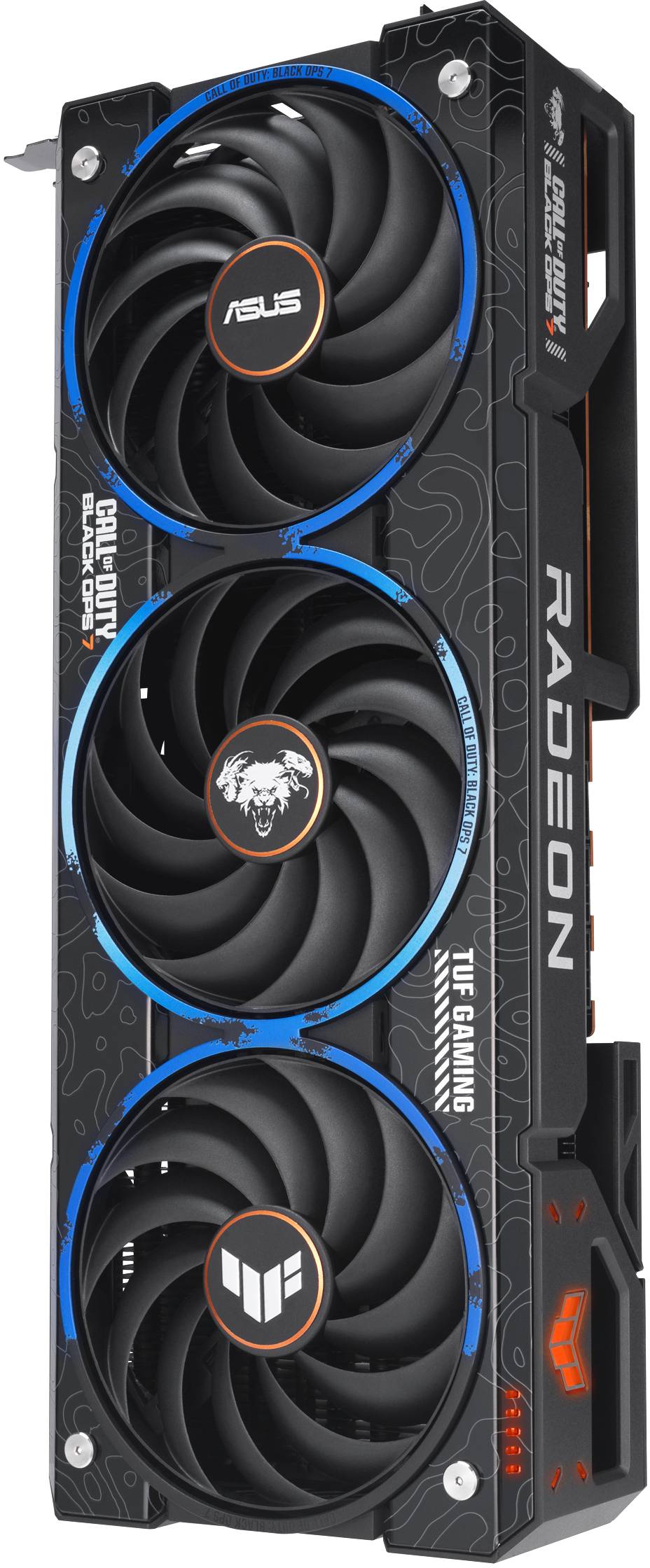 This limited, special edition graphics card is a collaboration between ASUS, AMD, and Call of Duty® : Black Ops 7. Its customized chassis and backplate feature Black Ops 7 elements and iconography, including the Black Ops 7 icon and orange accents in signature Black Ops style. Inside is the venerable Radeon™ RX 9070 XT GPU with the latest RDNA 4 architecture from AMD, 16GB of VRAM, the HYPR-RX™ feature set and a super-resolution mode that leverages machine learning.