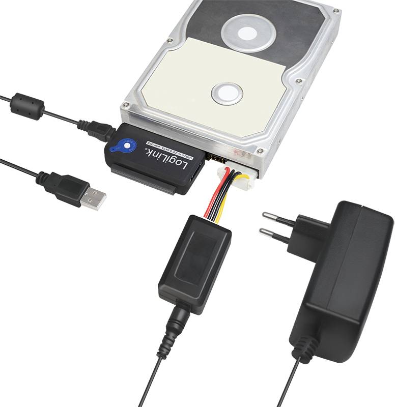 Logilink Adapter USB 2.0 till SATA/IDE 2.5"/3.5", inkl. strömadapter