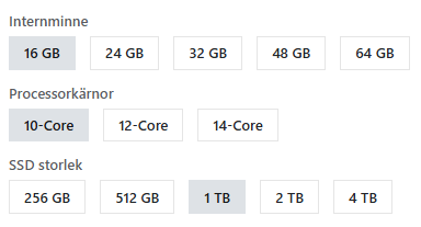 LagerhållningVi har nu både standardmodeller och CTO-modeller (Config To Order) hemma i butik och fler finns att beställa med 2-3 dagars leveranstid till oss, se listan här: