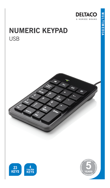 Numeriskt tangentbord DELTACO, 23 tangenter, 4 mediatangenter, USB