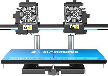 Independent dual extruders: enable diverse 3d printing modes including Mirror Mode, Duplicate Mode, Dual Filament Printing Mode, and Dual Color Printing Mode.