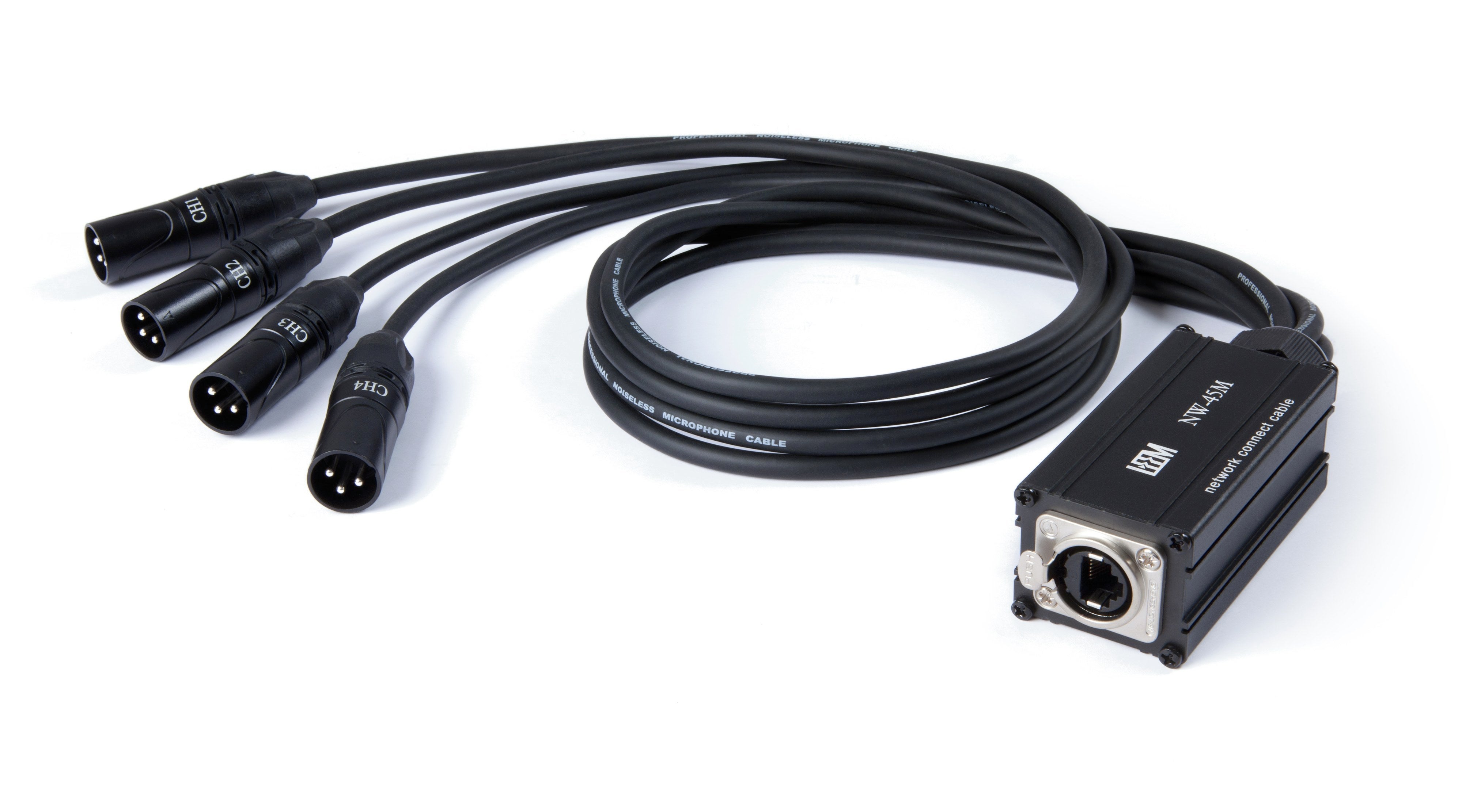 • Anslutningar: 4-kanals XLR hane till RJ45 etherCON "F"-uttag