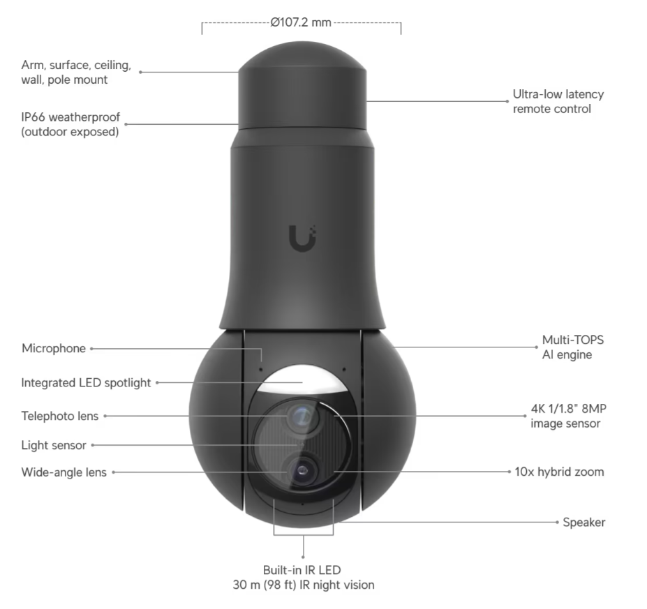 Allweather 4K duallens camera with 10x hybrid zoom 118inch 8MP image sensor multiTOPS AI engine and ultralow latency pantiltzoom control for motion tracking