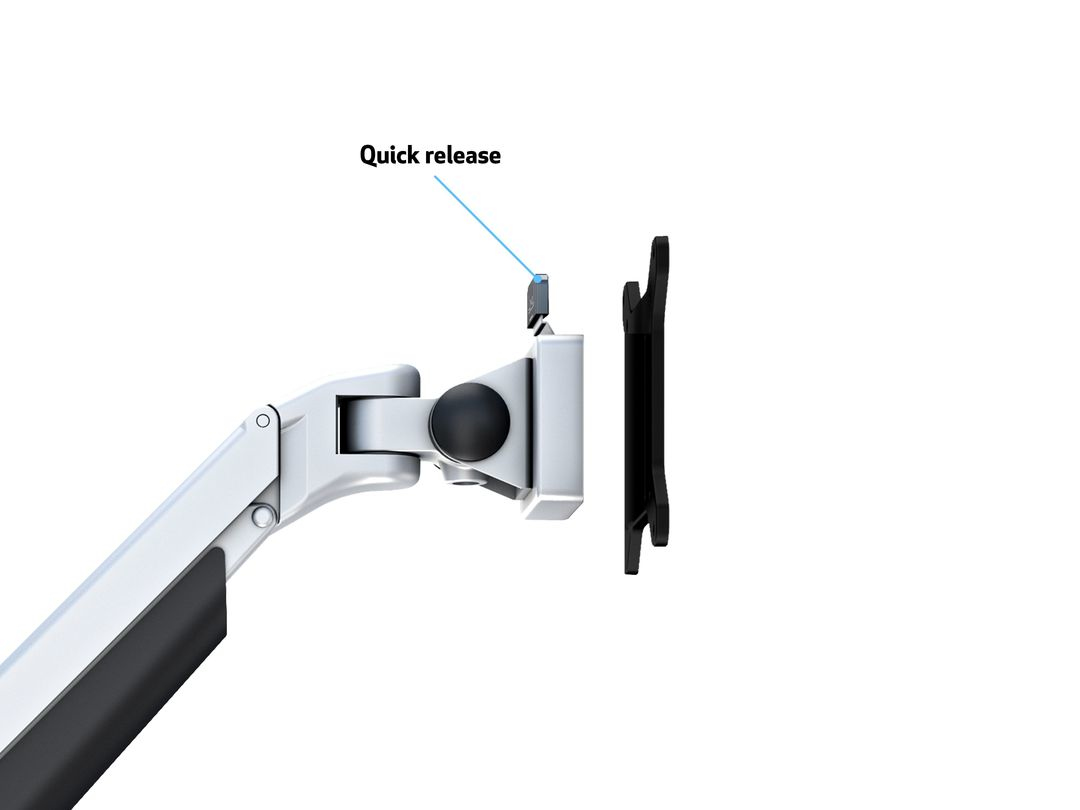 The M VESA Gas Lift Arm is made out of a durable aluminum construction and uses a gas driven suspension technique. This makes the screen "float" and it can then be moved with near zero effort. Sleek and streamlined, the M VESA Gas Lift Arm frees up space and allows positioning of your display for greater productivity. The unique counterbalance gas technology provides smooth adjustment in any direction. Easy move the screen from landscape to portrait position or move the screen close to the desk, high up, matching almost any wanted working position imaginable.