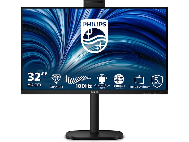 31.5" Philips 32B2U3601/00, IPS 2560x1440, 4 ms, 100Hz, höjdjusterbar, pivot, 2xHDMI/DP/USB-C 90W, högtalare, webbkamera, USB 3.2-hubb, 5 års garanti