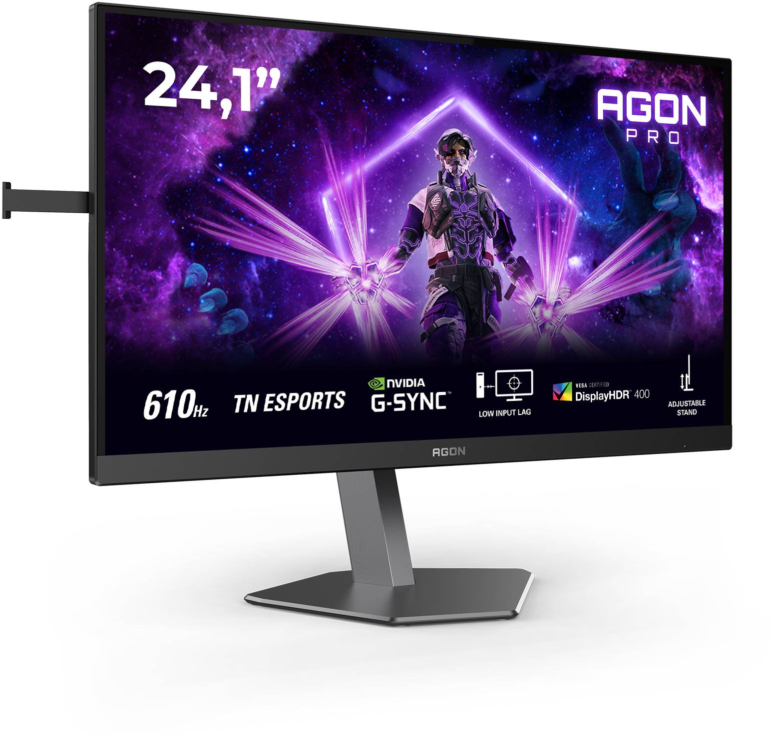 24.1" AOC AG246FK6, Fast TN eSports 1920x1080, 0.5 ms, 610Hz Adaptive-Sync, höjdjusterbar, pivot, 2xHDMI/DP, USB 3.2-hubb