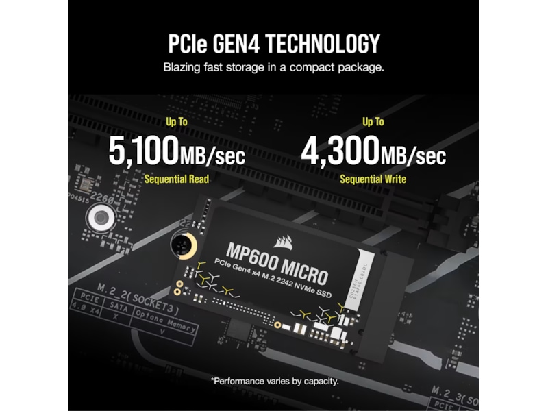 1 TB Corsair MP600 Micro SSD, M.2 2242 NVMe PCIe 4.0