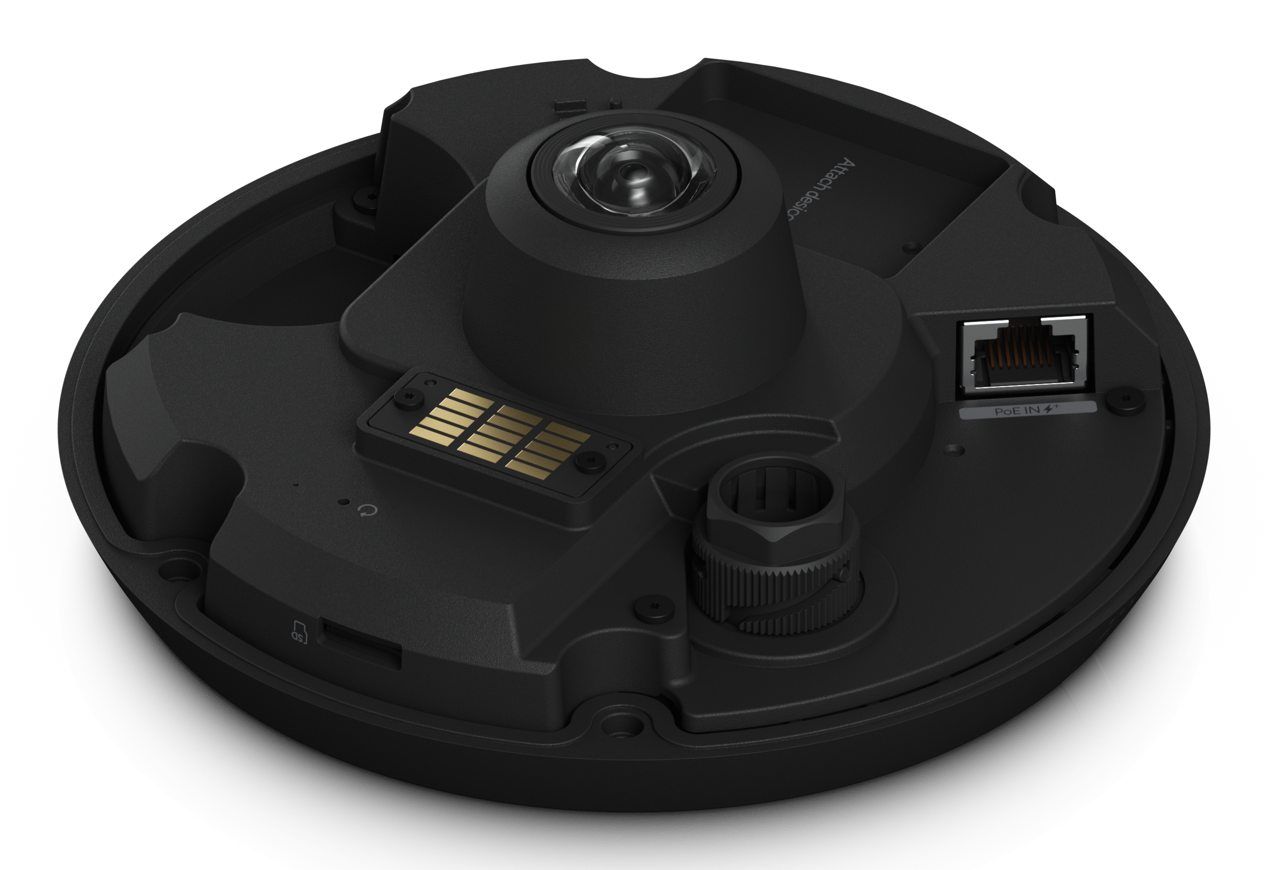 All-weather, vandal-resistant 12MP PoE camera with panoramic 360° coverage, digital pan-tilt-zoom functionality, and smart IR functionality.