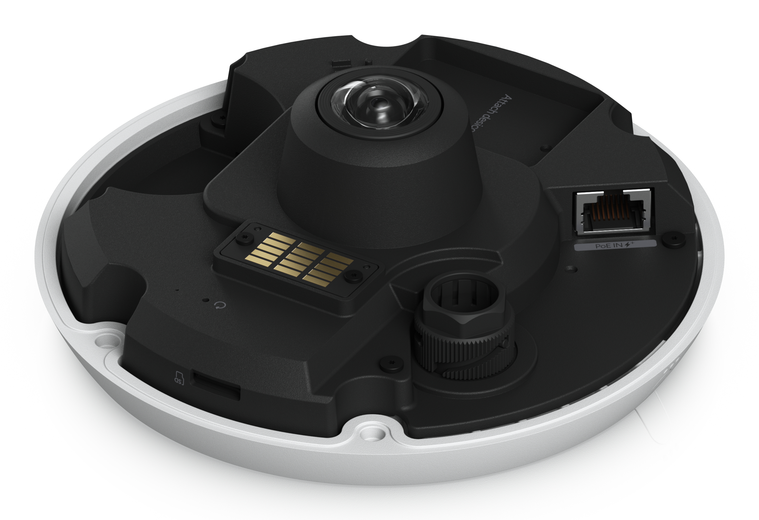 All-weather, vandal-resistant 12MP PoE camera with panoramic 360° coverage, digital pan-tilt-zoom functionality, and smart IR functionality.