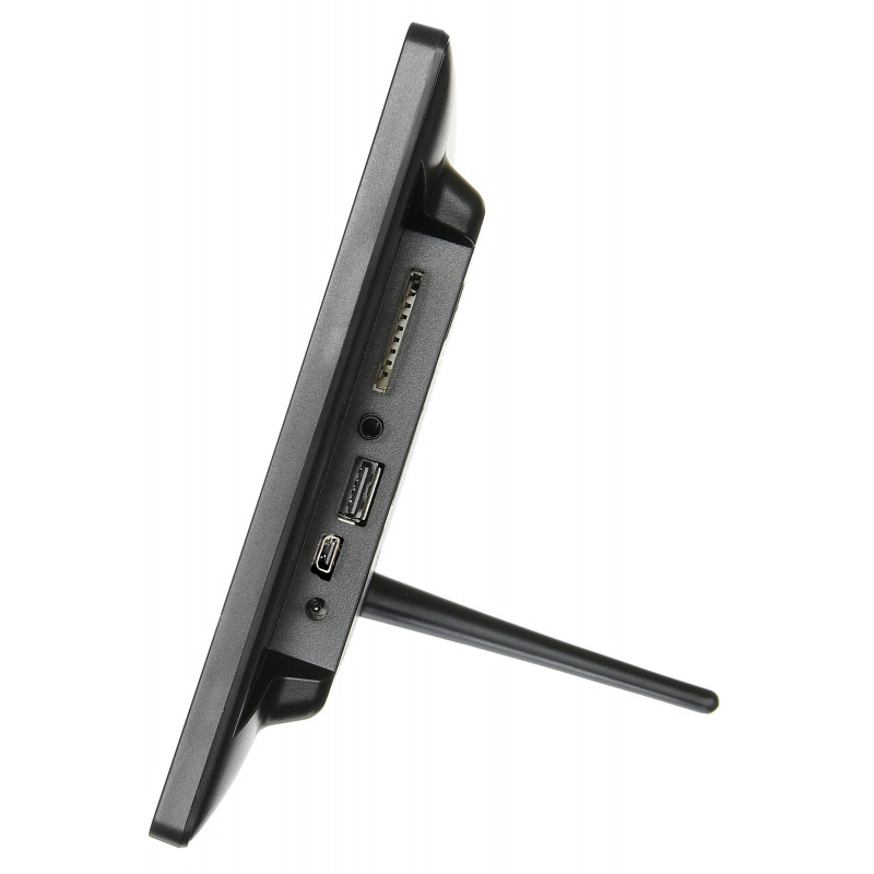 Digital picture frame with internal 16GB memory and large 10.1" IPS screen for displaying digital photos, video clips (supports 1080p FullHD video) and MP3 music files. LED backlight technology for clear images. Auto On/Off, HDMI in, Audio out.