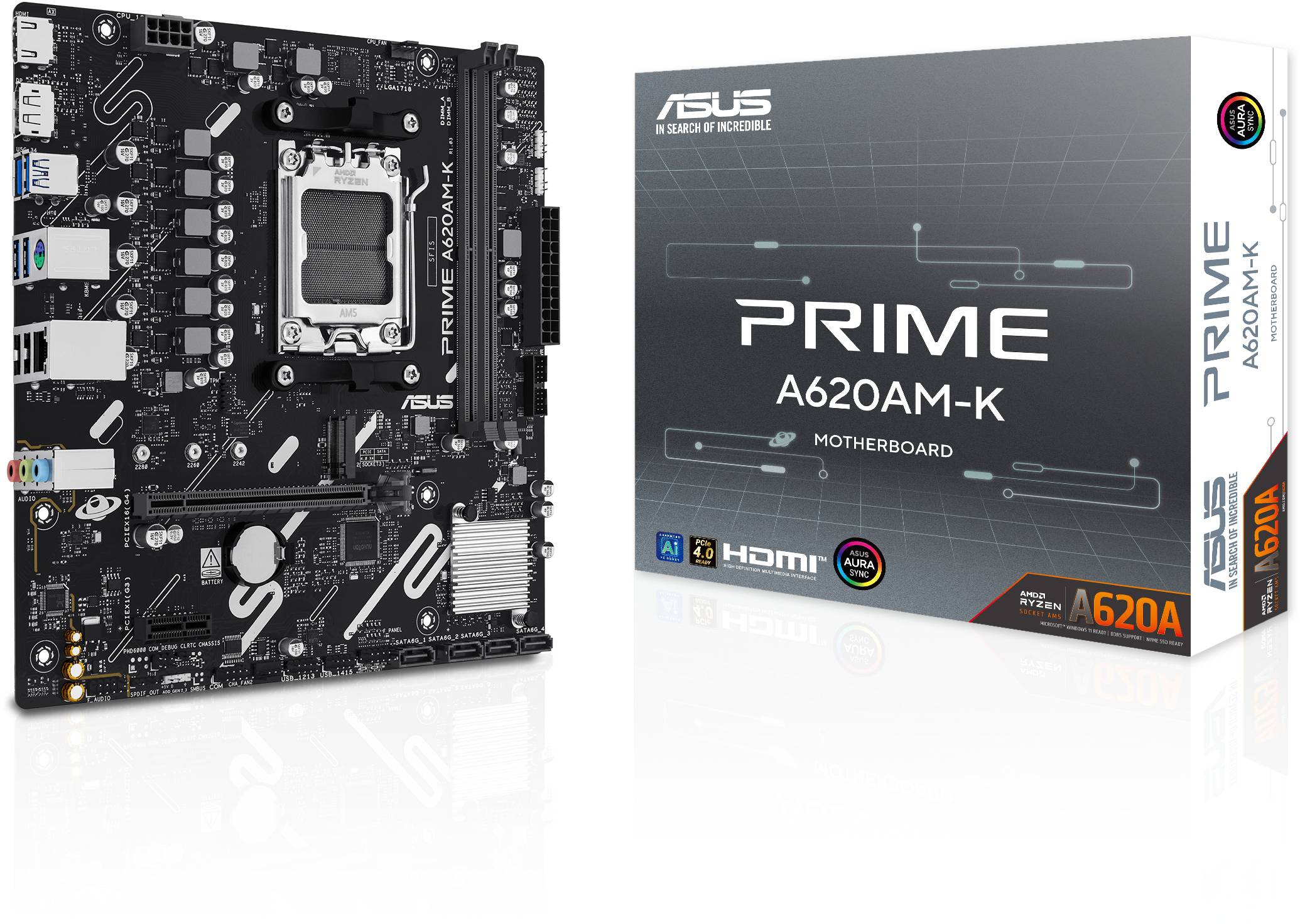 Asus PRIME A620AM-K, AMD AM5, MicroATX, 2xDDR5, PCI Express, M.2 + SATA3 RAID, HDMI/DP, USB 3.2, GigaLAN, Aura Sync RGB