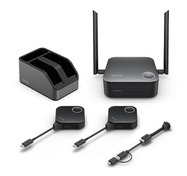 BenQ InstaShow WDC25, 4K@60Hz trådlös bild-/ljudöverföring, basstation + 2st USB-C-sändare med adapter för HDMI/USB-A